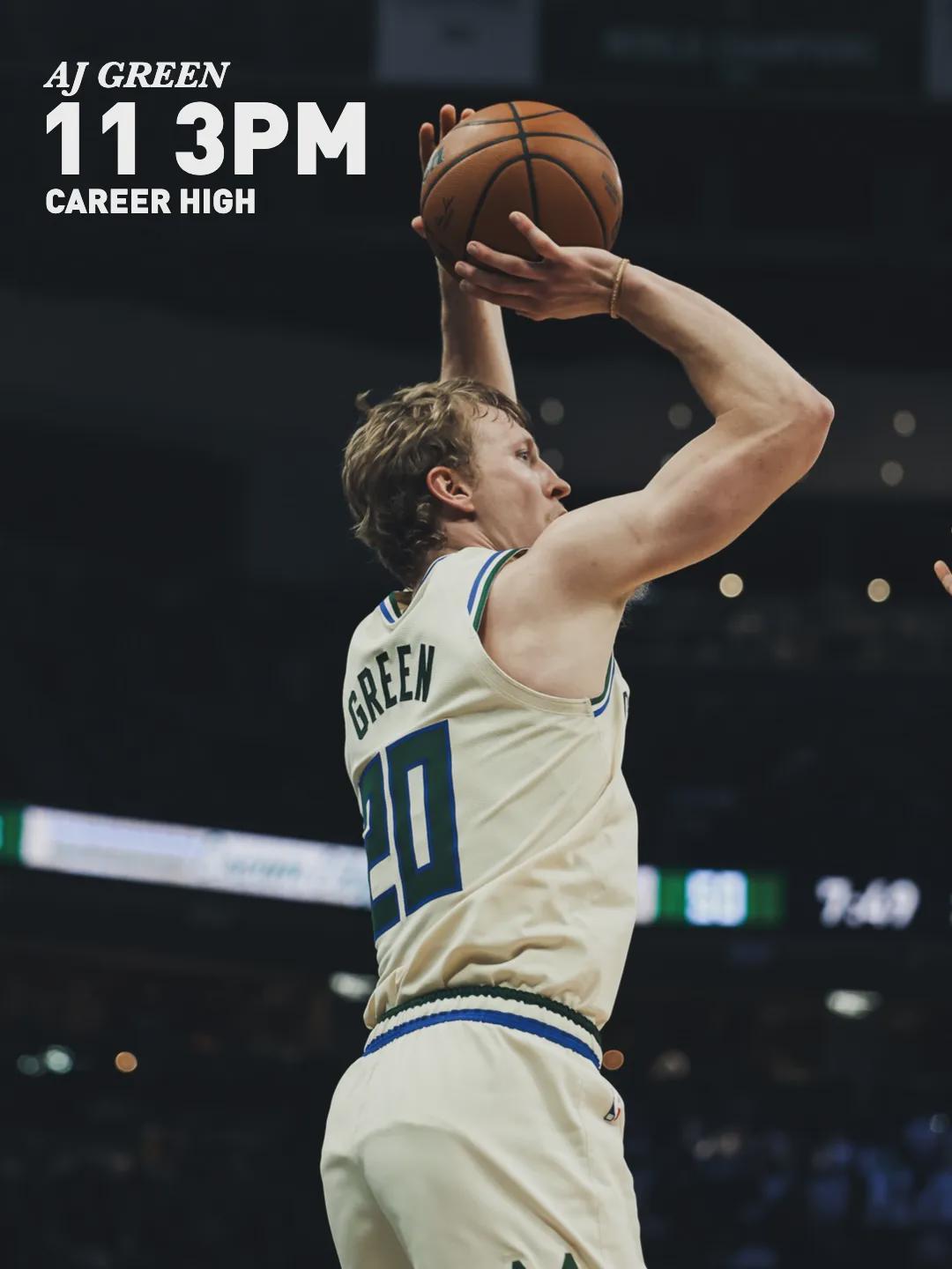 AJ-格林單場(chǎng)命中11記三分,打破雄鹿隊(duì)史紀(jì)錄,此前是由雷阿倫(2002年)和利拉德(2024年)共同保持的10記。 AJ-格林本賽季命中227記三分,超越馬利克-比斯利(224)升至隊(duì)史第二,僅次于雷阿倫的229記(2001年)。