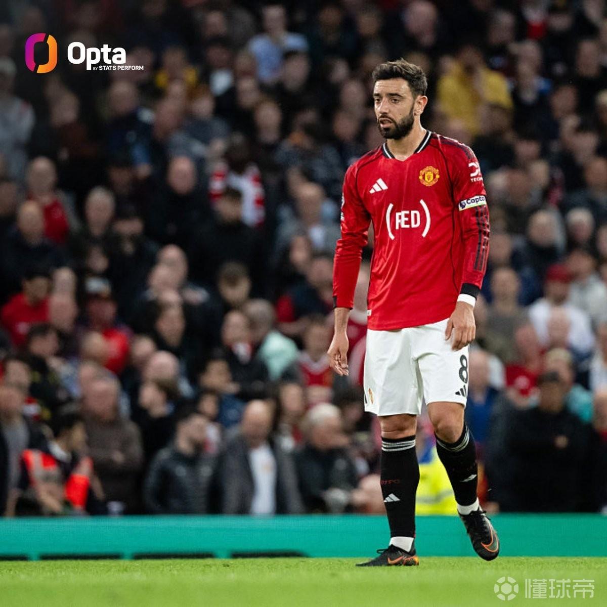 自范佩西以來,B費是首位連續(xù)7場英超參與進球的曼聯(lián)球員